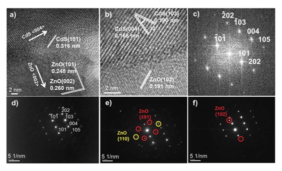圖3:CdS/ZnO樹枝狀異質(zhì)結(jié)在TEM下的結(jié)構(gòu)表征。